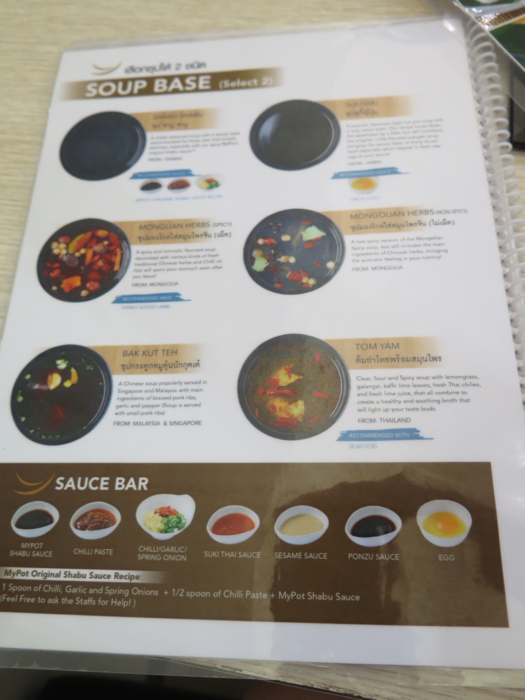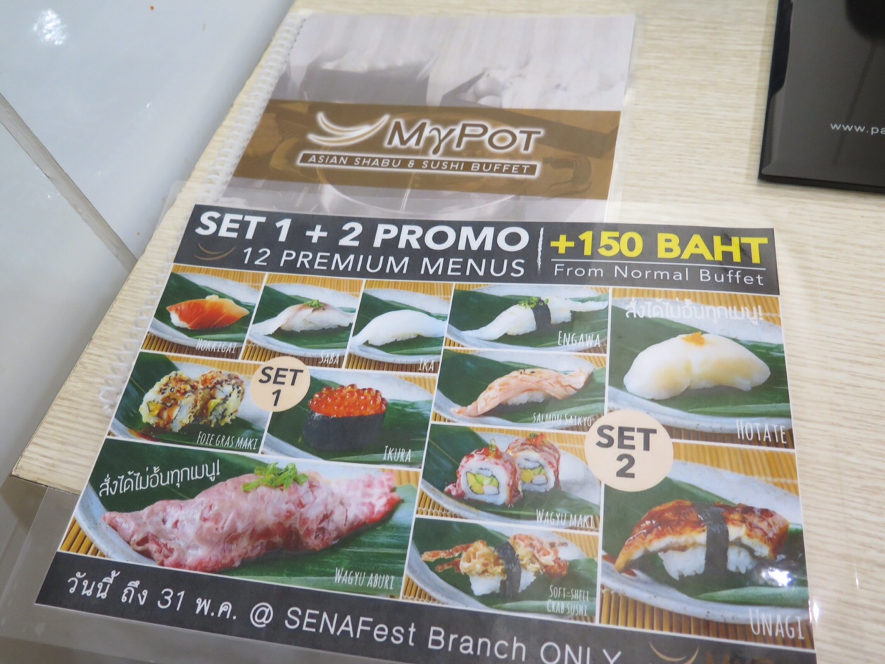 แรคคูนตะลอนชิม วันนี้ขอแนะนำร้านสำหรับคนรักชาบู และอาหารญี่ปุ่น นั่นก็คือร้าน My Pot ร้านนี้เป็นสาขาที่สอง ที่เพิ่งมาเปิดที่เสนาเฟสได้ไม่นานค่ะ ดังนั้นเราก็เลยได้ใช้โปรโมชั่นในการเลือกซูชิได้ถึง 2 เซตด้วย โดยรวมแล้วถือว่าคุ้มมากๆค่ะ เพราะอาหารที่ทานค่อนข้างสด ไข่ปลาแซลมอนก็ได้แบบไม่อั้นเลย ไหนจะมีปลาไหลอีก ^__^ เลือกนั่งโต๊ะแบบ 4 คน โต๊ะมาพร้อมกับหม้อ 2 หม้อ สามารถเลือกน้ำซุปได้ถึง 4 อย่างค่ะ เราก็เลยจัดมาเลย มีบะกุ๊ตเต๋ น้ำสุกี้ญี่ปุ่น น้ำต้มยำ แล้วก็ซุปอะไรสักอย่างจำไม่ได้แหะๆ สรุปคือชอบน้ำสุกี้ญี่ปุ่นสุดค่ะ ส่วนน้ำบะกุ๊ตเต๋นี่แปลกดี ไม่เคยกินแบบสไตล์ชาบูมาก่อน มาพร้อมเนื้อหมูติดกระดูกด้วย ต้มไปนานๆ รสชาติเริ่มไม่เข้าเคล้า 555 ขอกลับไปแบบเพลนๆดีกว่า