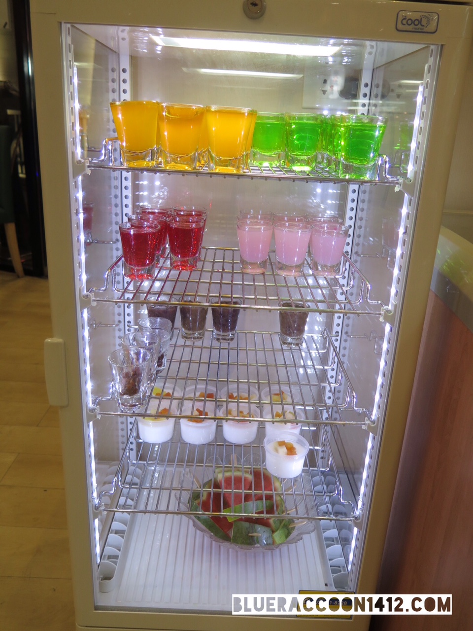 ของหวานมีเท่าที่เห็นตามตู้ค่า เป็นพวกเยลลี่ แล้วก็มีเต้าฮวย ส่วนผลไม้มีแต่แตงโมอย่างเดียวค่ะ