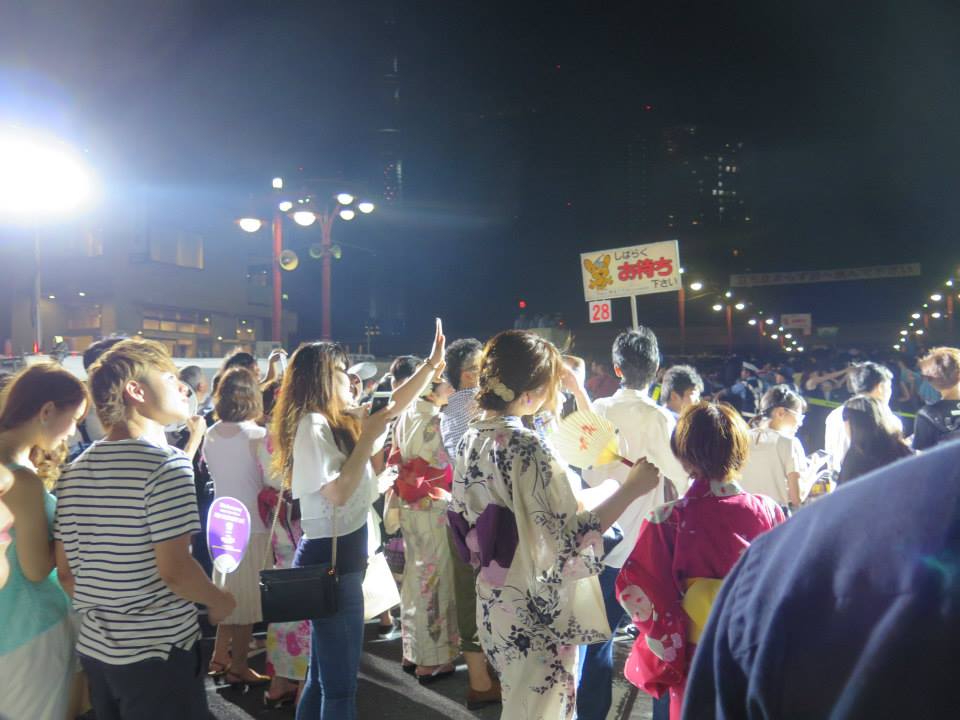 3. งานเทศกาล งานวัด งานเต้นรำบงโอโดริ สมัยเด็กๆอ่านการ์ตูนญี่ปุ่นแล้วก็มีความใฝ่ผันมาตลอดว่าต้องไปงานวัดกับเค้าสักครั้ง 555+ ช่วงเดือน ก.ค. – ส.ค. มีงานเทศกาลเยอะมาก ช่วงที่เราไปเป็นปลายเดือน ก.ค. มีงาน Kagurazaka Matsuri Festival ที่สถานี Iidabashi ลงจาก JR แล้วก็ถึงานเลยค่ะ งานนี้ครึกครื้นมาก มีการแข่งเต้นกันจากทั้งหมด 20 ทีม เต้นกันแบบว่า Non stop ขึ้นเขาด้วย ใส่เกี๊ยะด้วย แล้วก็ร้อนมากด้วย อึดสุดๆ ส่วนสองข้างทางก็มีขายเบียร์สด จิบแก้กระหาย น้ำแข็งไส ร้านปิ้งย่างเสียบไม้ละลานตาเลยค่ะ งานนี้เริ่มตั้งแต่ 19:00-21:00 มีแค่ 4 วันเท่านั้น แต่หน้าร้อนก็ไม่ได้มีเฉพาะเทศกาลนี้เท่านั้น เรายังสามารถหาข้อมูลอีเว้นท์อื่นได้ตามเว็บไซต์ เช่น Japantimes หรืออย่างเว็บ Timeout ซึ่งมีนิตยสารแจกฟรีรวมสถานที่ท่องเที่ยว อีเว้นท์ต่างๆที่น่าสนใจแจกฟรีตามสถานีใหญ่ๆในโตเกียวด้วยค่ะ