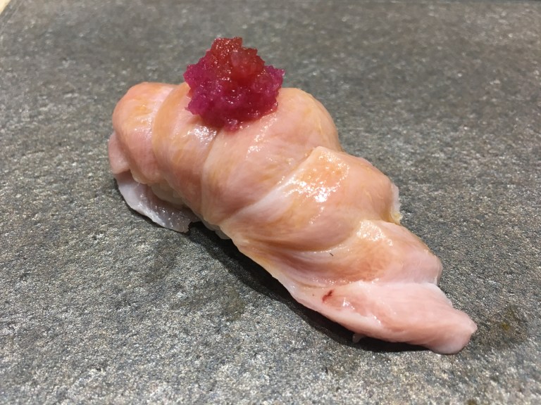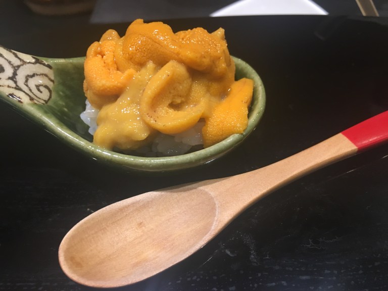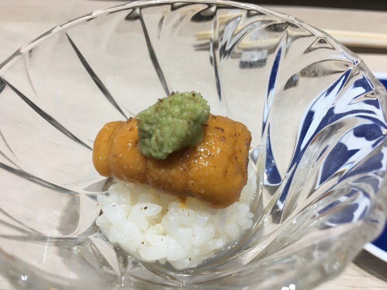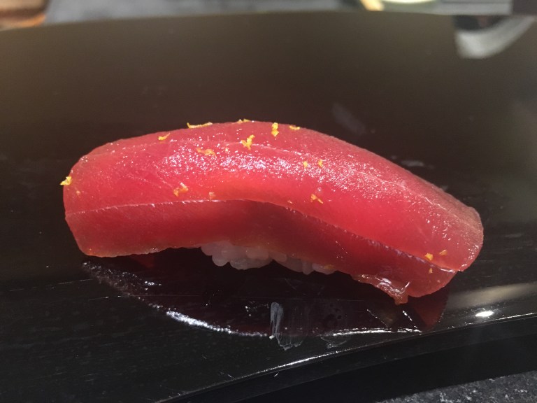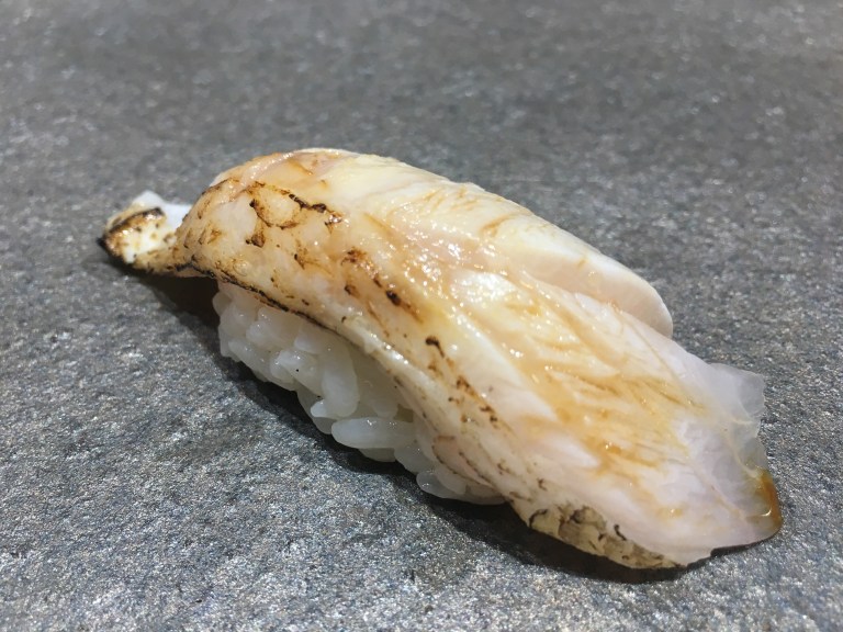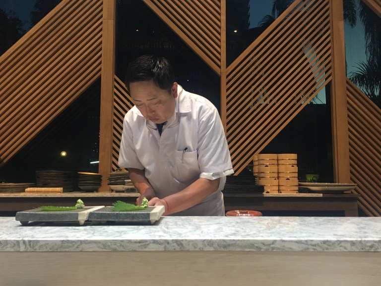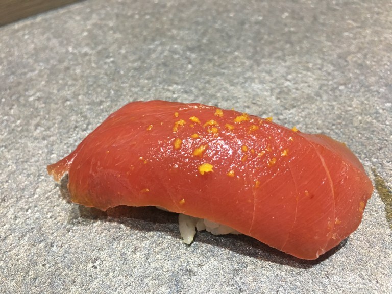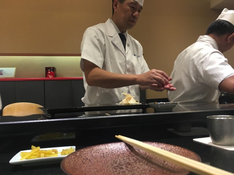 ความสนุกของการทาน Omakase ก็คือนั่งตรงเคาน์เตอร์มองหน้าเชฟเตรียมวัตถุดิบ แล้วก็วางให้เราทานตรงหน้า โดยเชฟก็จะไล่ลำดับไปเรื่อยๆตามคอร์สค่ะ ส่วนใหญ่การทาน Omakase เราใช้มือหยิบทานเลยนะคะ จะไม่ได้ใช้ตะเกียบค่ะ