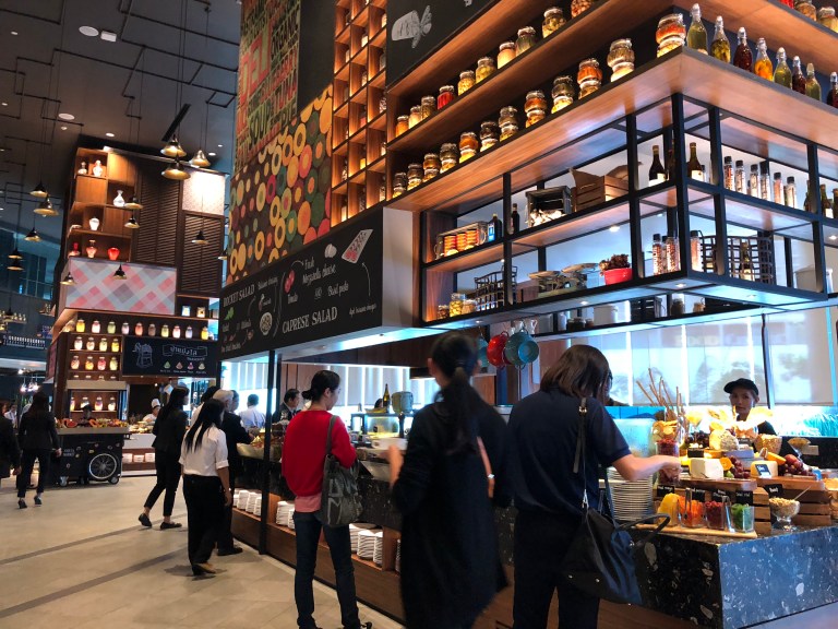 ด้านบรรยากาศภายในห้องอาหาร ด้วยผนังที่ทำไว้ค่อนข้างสูงโปร่ง แต่ละ Station ก็อยู่กระจายตัวกันไม่กระจุกเกินไป ได้บรรยากาศการกินสบายๆไม่อึดอัดค่ะ
