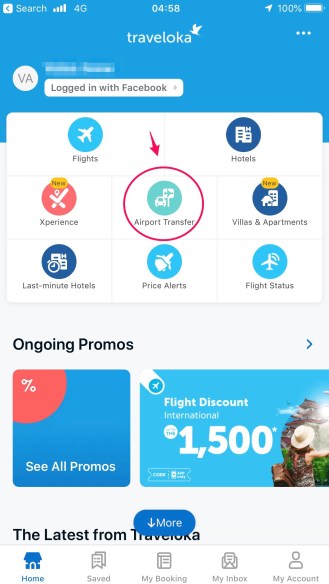 1.เปิดเข้า App แล้วก็เลือก Airport Transfer