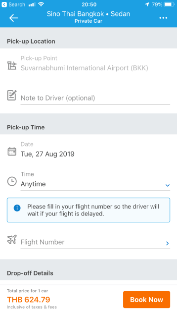 สำหรับวิธีการจองนั้น ก็ง่ายแสนง่าย จะจองผ่านเว็บ https://www.traveloka.com/th-th/airport-transfer หรืออย่างเราที่จองผ่าน App ในมือถือก็ทำได้