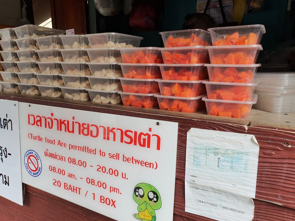 🐢🙏จุดต่อไปเราไปให้อาหารเต่าที่วัดประยูร เค้าจะมีขายอาหารด้านหน้าทางเข้า กล่องละ 20 บาท ให้เลือกระหว่างมะละกอกับลูกชิ้น