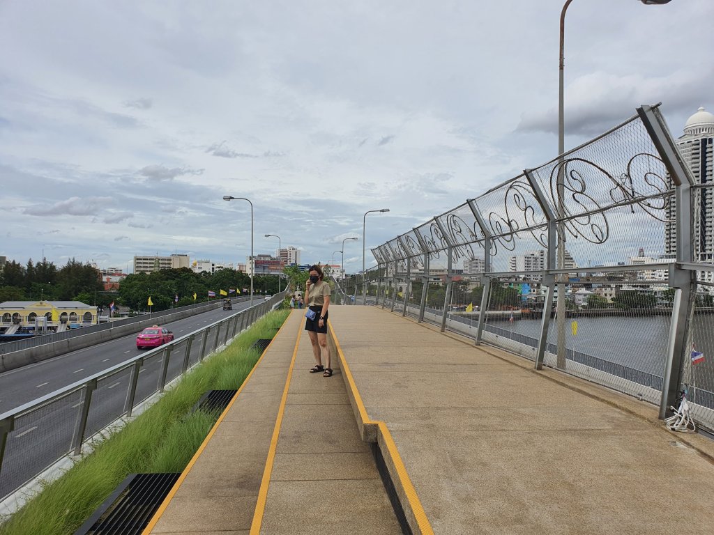 🚲สวนลอยฟ้าเจ้าพระยา สะพานพระปกเกล้า เข็นจักรยานขึ้นมาได้ มีดอกไม้ต้นไม้ ที่นั่งพัก ลมโกรกร่มรื่นทีเดียว