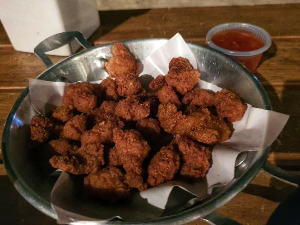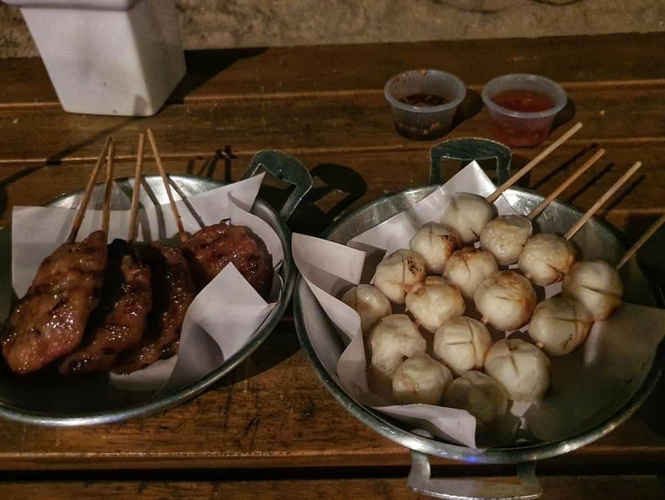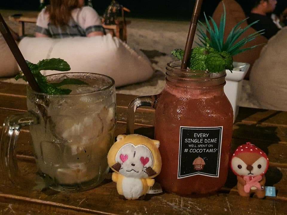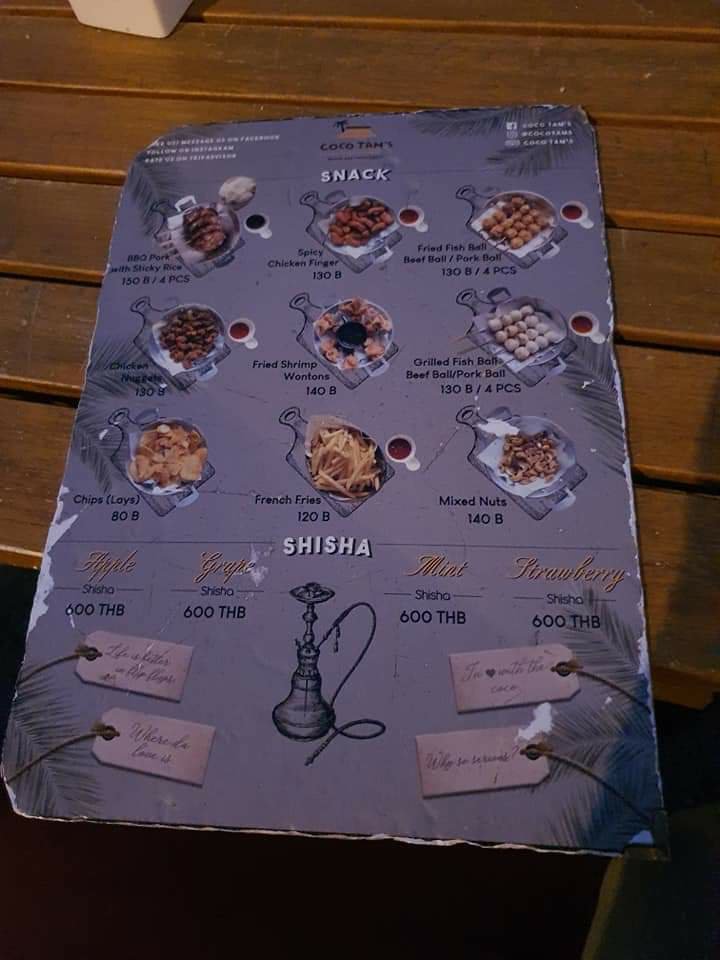 🍽 อาหารและเครื่องดื่ม ถ้าสั่งจากที่นั่งริมชายหาดจะสั่งได้เฉพาะของกินเล่นค่ะ ถ้าอยากทานอาหารหนักต้องไปนั่งโซนด้านบน ซึ่งเราไม่อยากพลาดที่นั่งด้านล่างก็เลยกินอาหารทานเล่นรองท้อง อย่างพวกลูกชิ้นปิ้ง ไก่ทอด หมูปิ้ง ที่ชอบสุดน่าจะเป็นหมูปิ้งค่ะ รสชาติเข้มข้น มีข้าวเหนียวให้มาด้วย