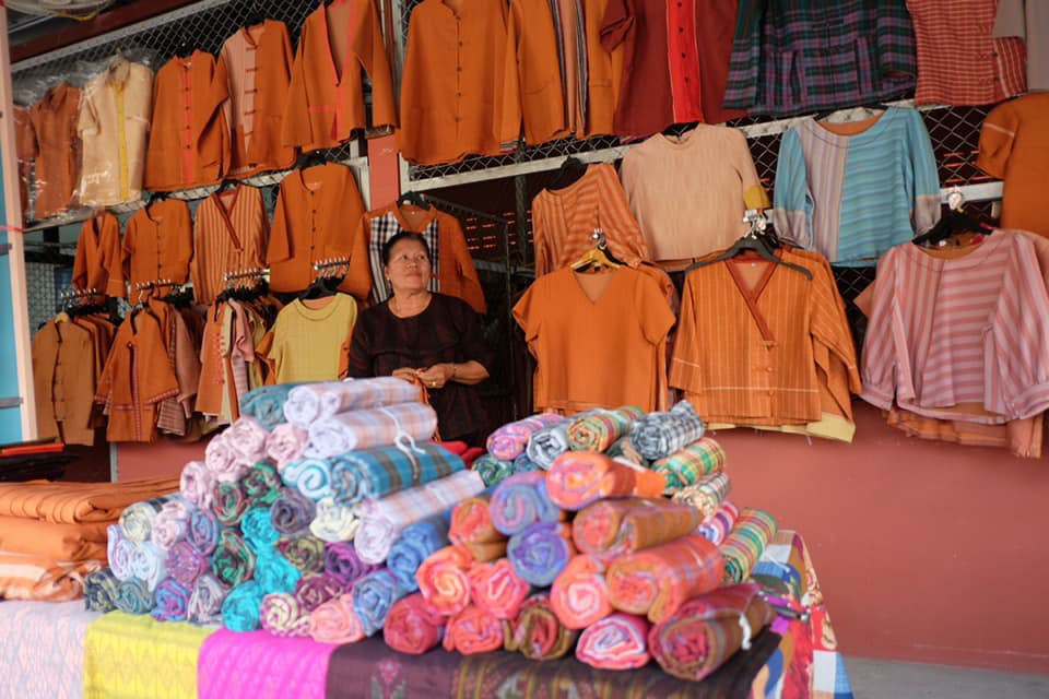 ผ้าภูอัคนี หรือผ้าย้อมสีธรรมชาติจากภูเขาไฟ ชาวบ้านเจริญสุขคิดค้นวิธีการนำดินเหล่านี้มาใช้ย้อมผ้า และยังได้นำวัตถุดิบจากธรรมชาติที่หาได้ในท้องถิ่นอื่นๆมาประยุกต์ใช้ ทำให้ผ้าที่ย้อมได้ออกมามีสีสวยงามอย่างมีเอกลักษณ์