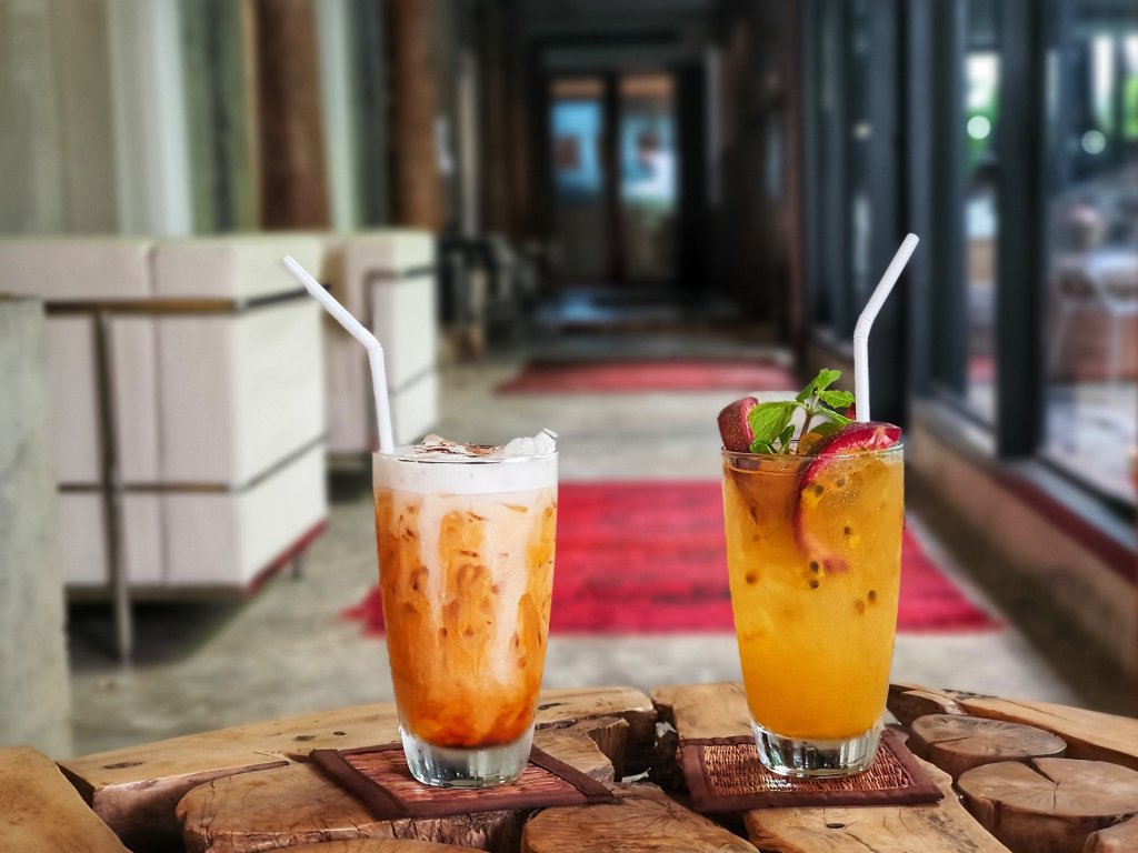 ☕มุมร้านกาแฟให้นั่งทานขนมและจิบกาแฟ หรือเครื่องดื่มอย่างผลไม้สกัดก็มีให้เลือกเหมือนกัน
