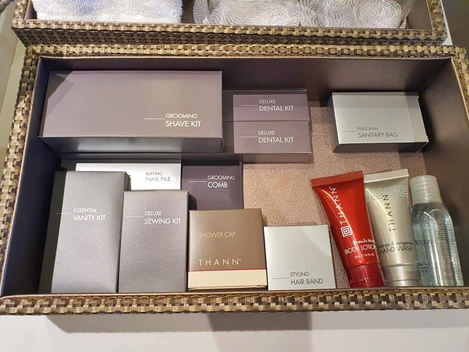 ส่วน Amentity kits เป็นยี่ห้อ Thann ก็มาแบบครบครัน หรือใครอยากขอเพิ่มก็โทรหรือกดผ่านApp Marriott Bonvoyได้เลย