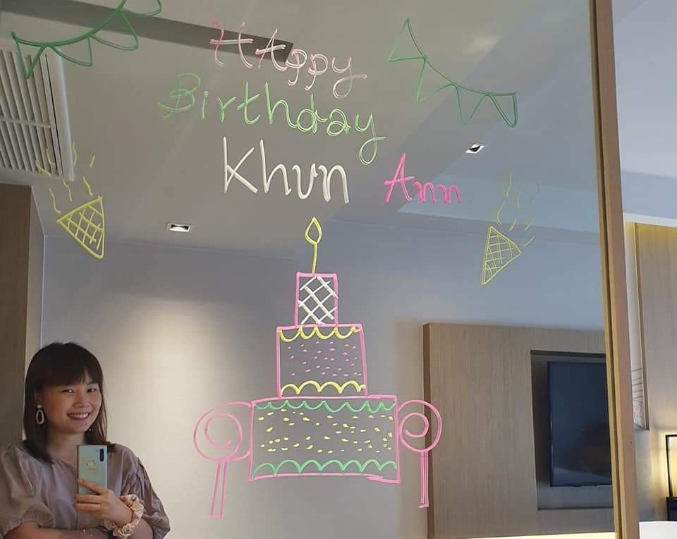 แอดมาพักช่วงวันเกิด ก็เลยแอบรีเควสขอHBDให้ตัวเอง🤣 โดยเราสามารถโทรแจ้งกับทางโรงแรมไว้ก่อนที่จะเข้าพักค่ะ ว่าเราเกิดวันไหน ก็เลยได้คำอวยพรบนกระจกพร้อมเค้กช๊อคโกแลตจากทางโรงแรม (อร่อยด้วย55) ค่อนข้างประทับใจเลยค่ะ นอกจากนี้บนเตียงก็จะเจอกับน้องกระต่ายผ้าเช็ดตัวที่มาเป็นกองทัพ 🐇
