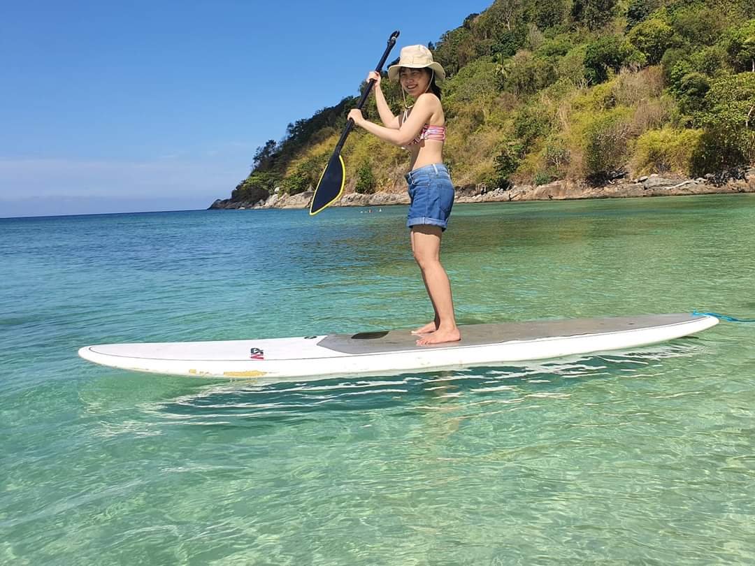สำหรับแอดได้ลองพาม๊ามาพายเรือคายัค จะมีทั้งแบบลำที่นั่งคู่ แล้วก็ลำที่พายเดี่ยว หรืออยากเล่น Paddle board ก็สามารถเล่นได้ ฟรีด้วย 😁
