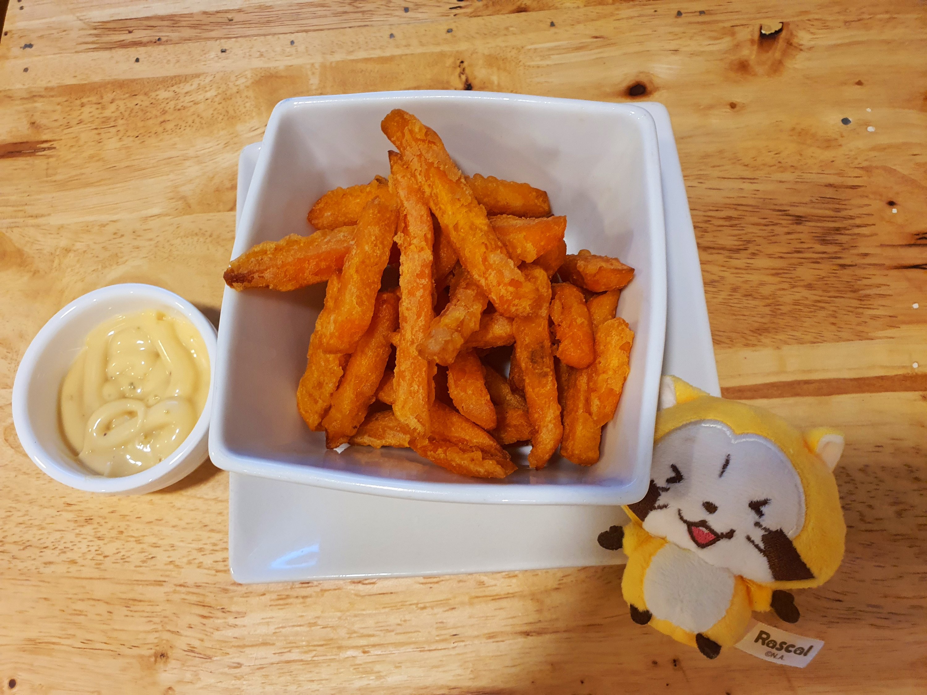 ✨เครื่องเคียงที่สั่งมากินเล่นที่แอดปลื้มสุด เห็นจะเป็นมันหวานทอด ราคาที่ร้าน 59 บาท กินเล่นก็ดี ราคาไม่แพง กินคู่แกงกระหรี่ยิ่งฟิน นี่แม้ตอนนี้จะ Lock down แอดก็ยังสั่ง Delivery ผ่าน Lineman มากินที่บ้านฟินๆ (จริงๆมีหลายDeliveryเลย ลองจิ้มดูกันจ้า)